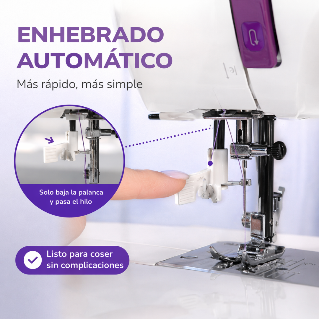 • Enhebrado automático y guías claras para usar sin complicaciones.